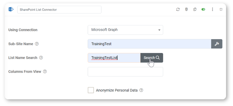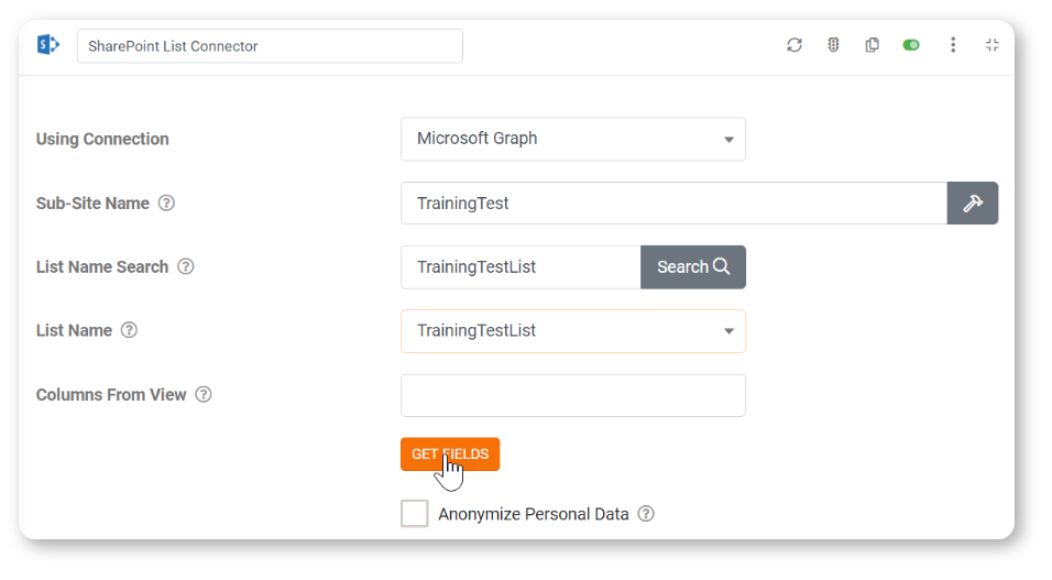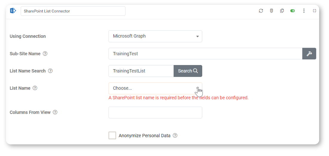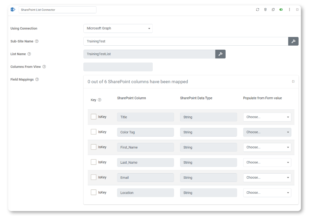 Go to the Connectors page on any Form and add the new SharePoint List Connector. For this example, we will show you how to set up a Sharepoint List connection that uses a Microsoft Graph connection.