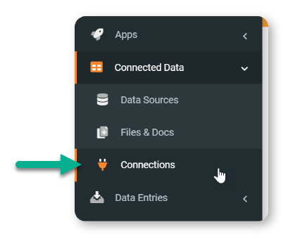 The Connections area of the platform is where you can add connections for connectors. Navigate the side menu to Connected Data > Connections.